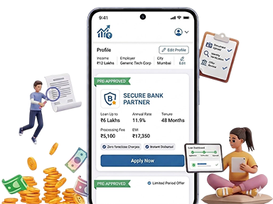 Disclaimer: Loan tenure ranging from a minimum of 6 months to a maximum of 72 months with Annual Interest Rates between 10% - 35%. Processing fee up to 2%. For Example: Considering a personal loan of Rs.1,00,000 availed at 11.5% interest rate for a tenure of 6 years with 2% processing fee, the APR will be 12.26%. *T&C Apply. All these numbers are tentative/indicative, the final loan specifics may vary depending upon the customer profile and NBFCs' criteria, rules & regulations, and terms & conditions. Company Registered Address : 3rd floor, Plot no-28, Parvati Nagar co-op HSG Society - 2 Katargam, Surat, Gujarat, India - 395004